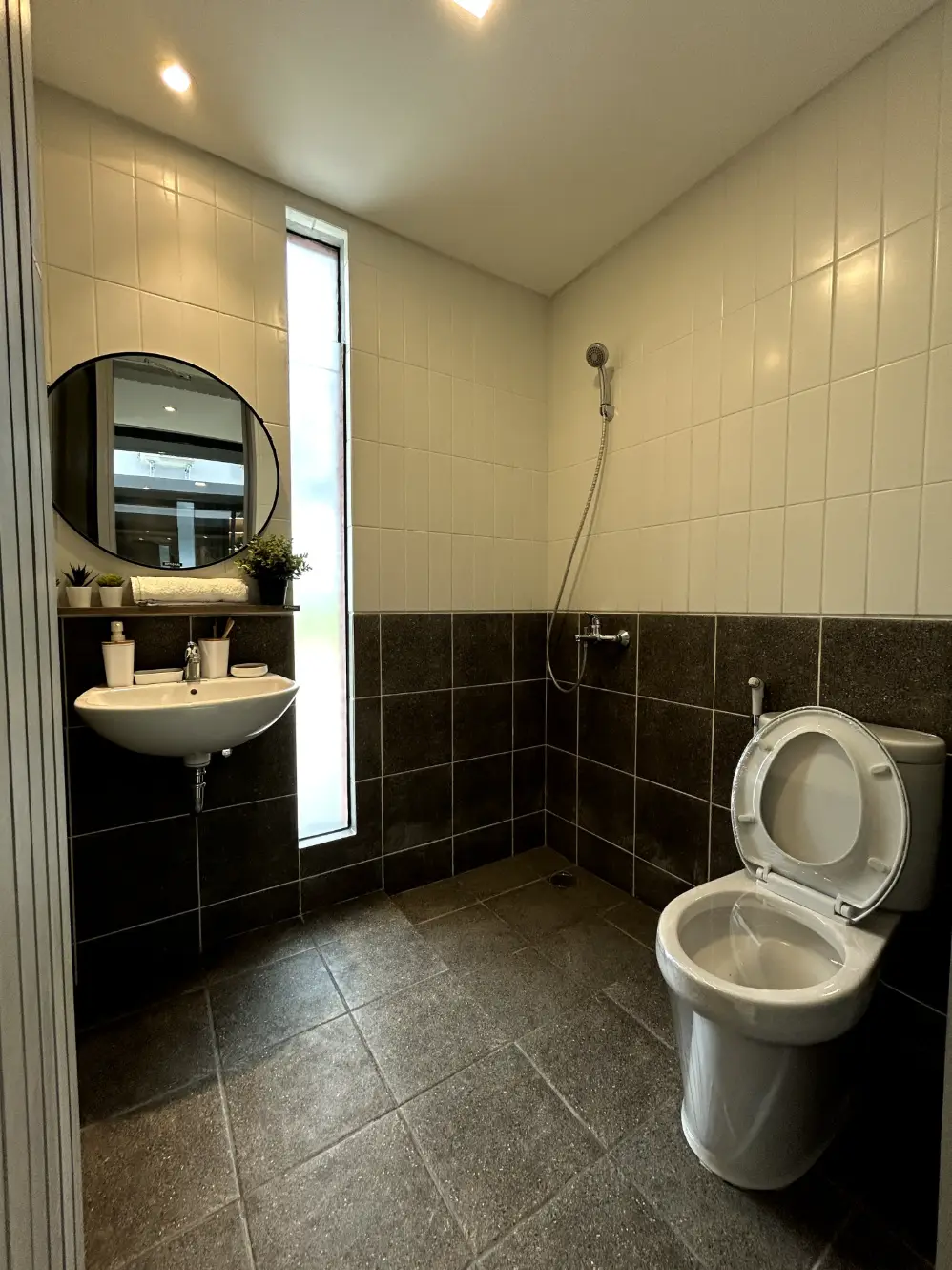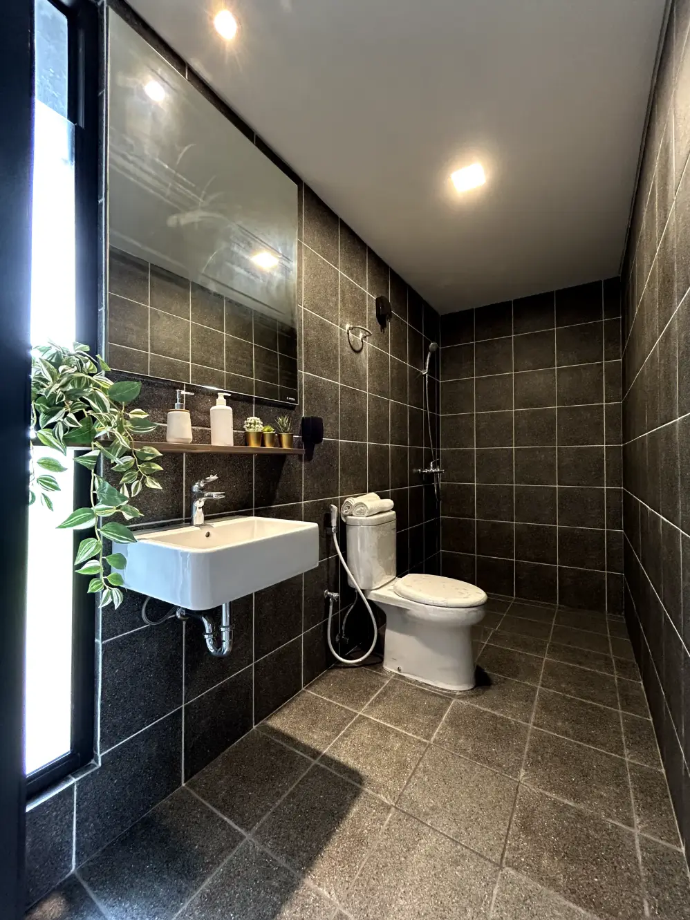 Lantai 2 menawarkan privasi maksimal dengan master bedroom lengkap dengan kamar mandi dalam, balkon pribadi untuk menikmati suasana segar Bandung, serta 2 kamar tidur tambahan dengan kamar mandi bersama.