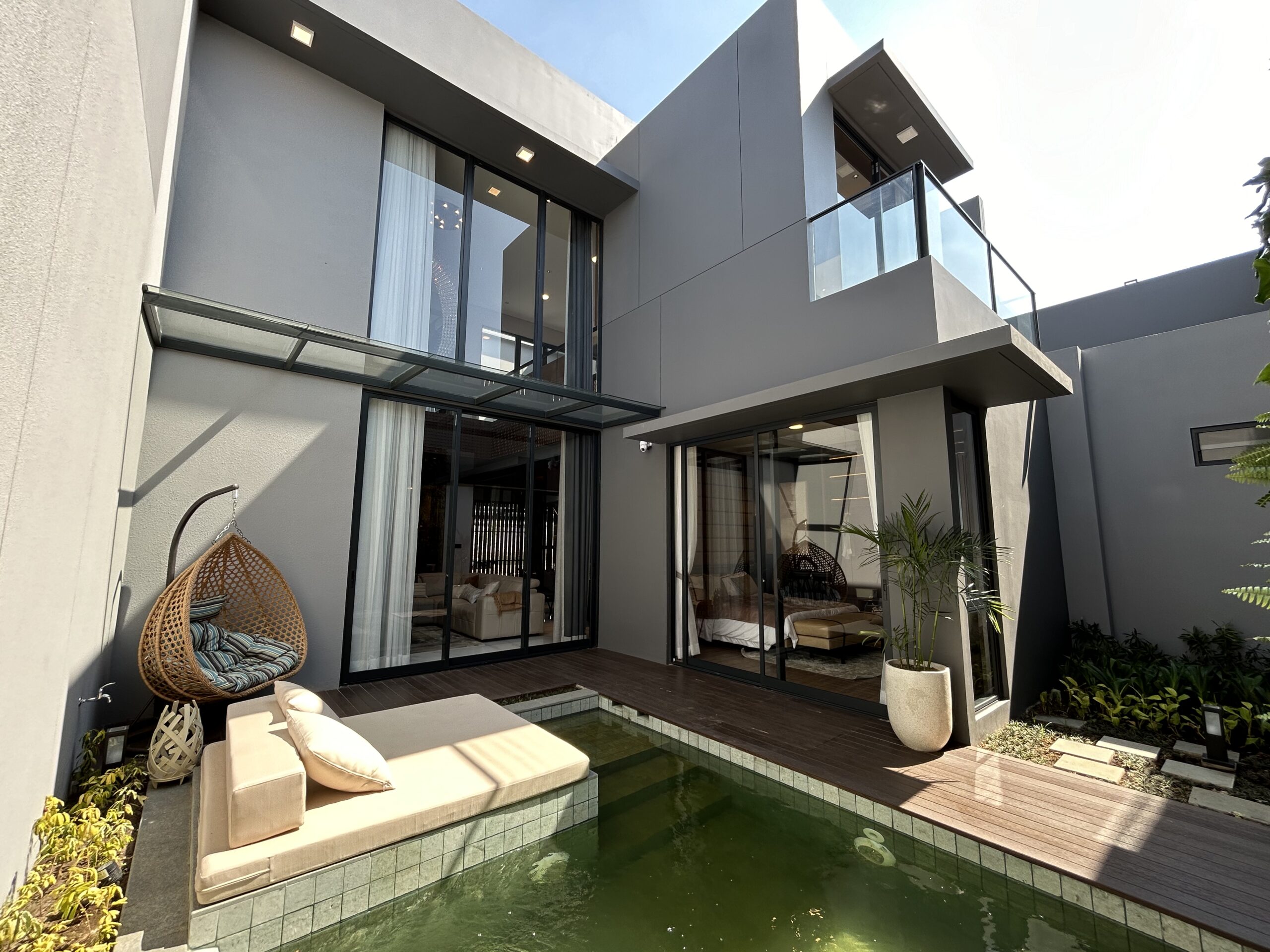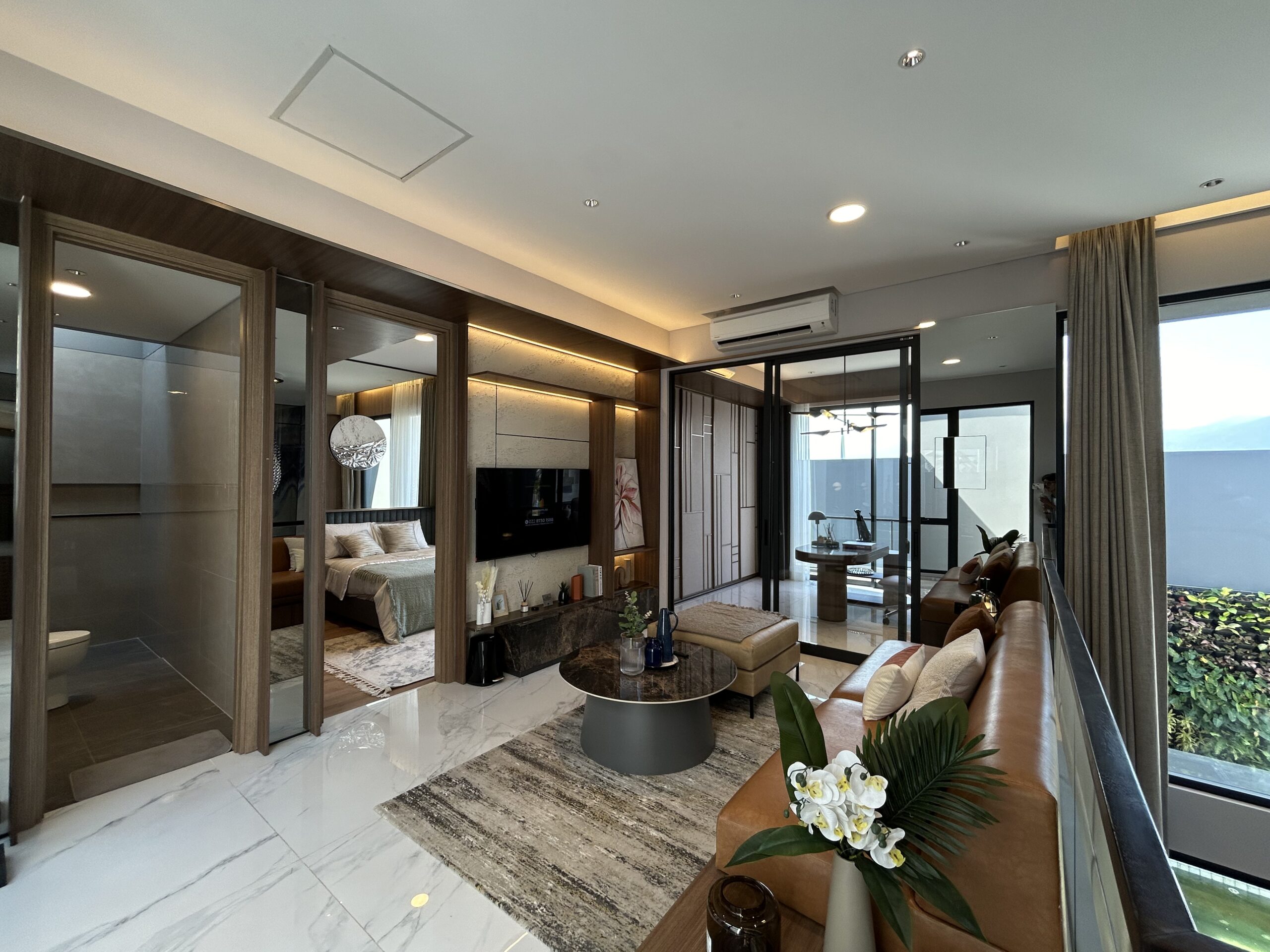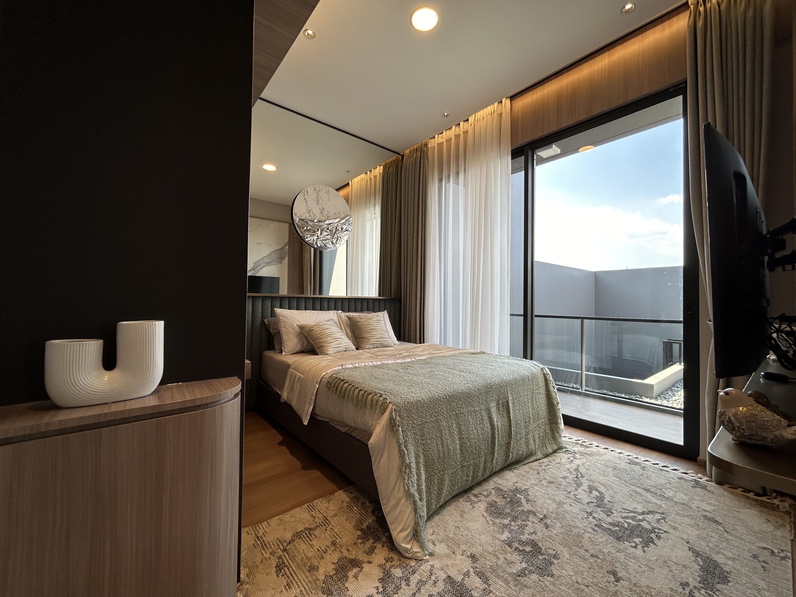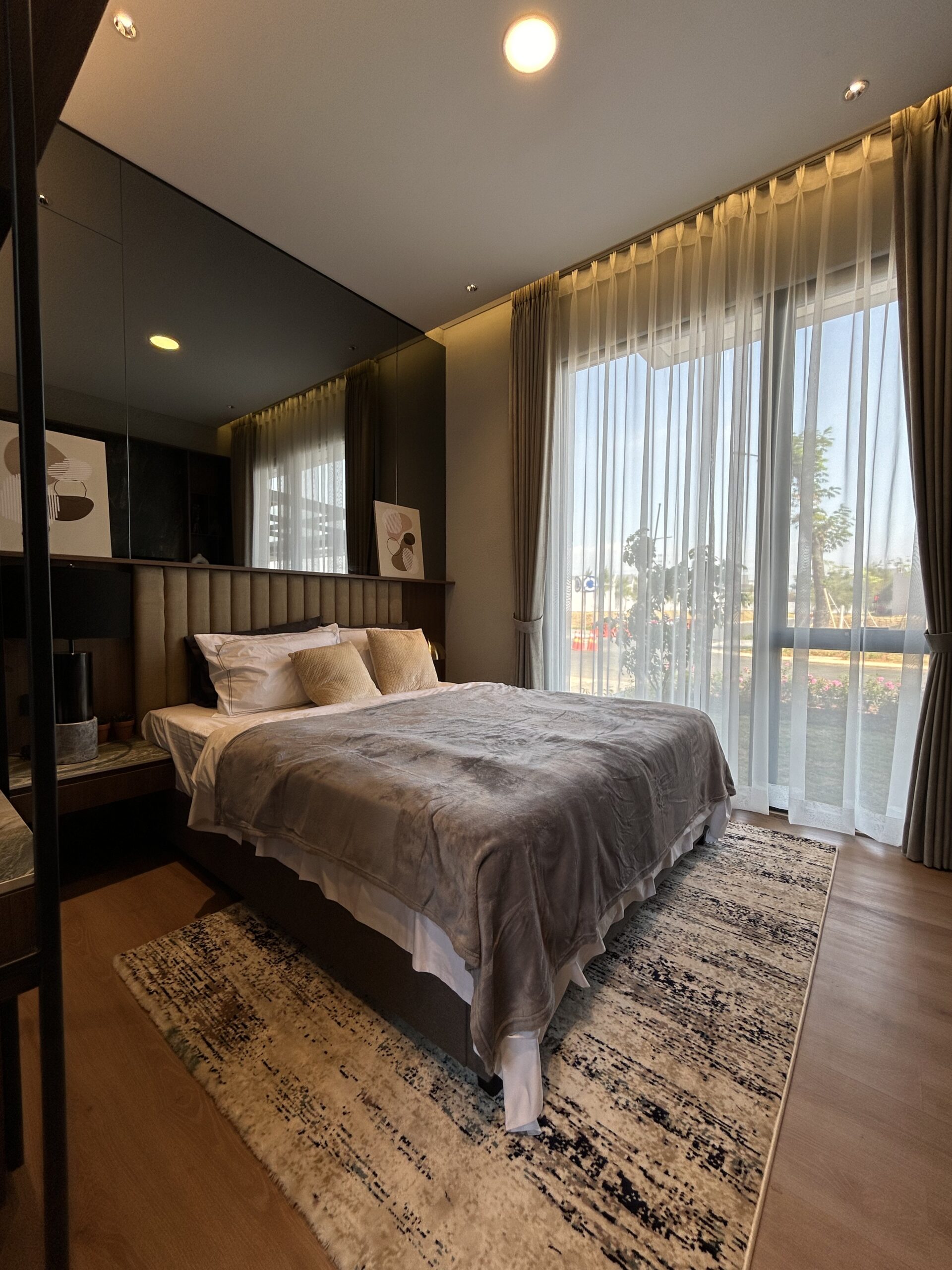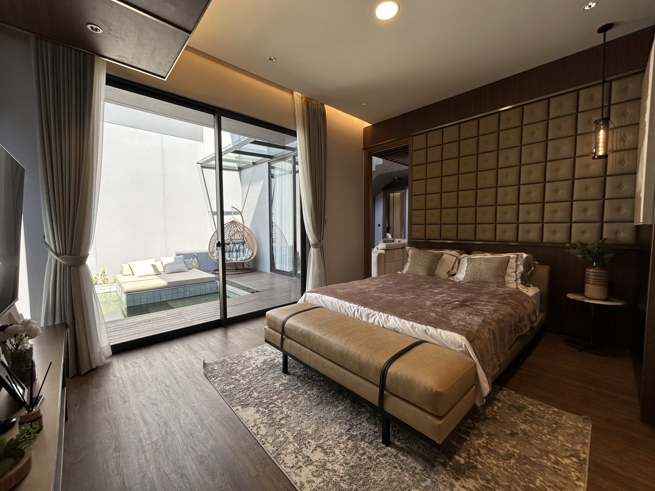 - Master bedroom mewah, dilengkapi walk-in closet, kamar mandi pribadi, dan balkon.