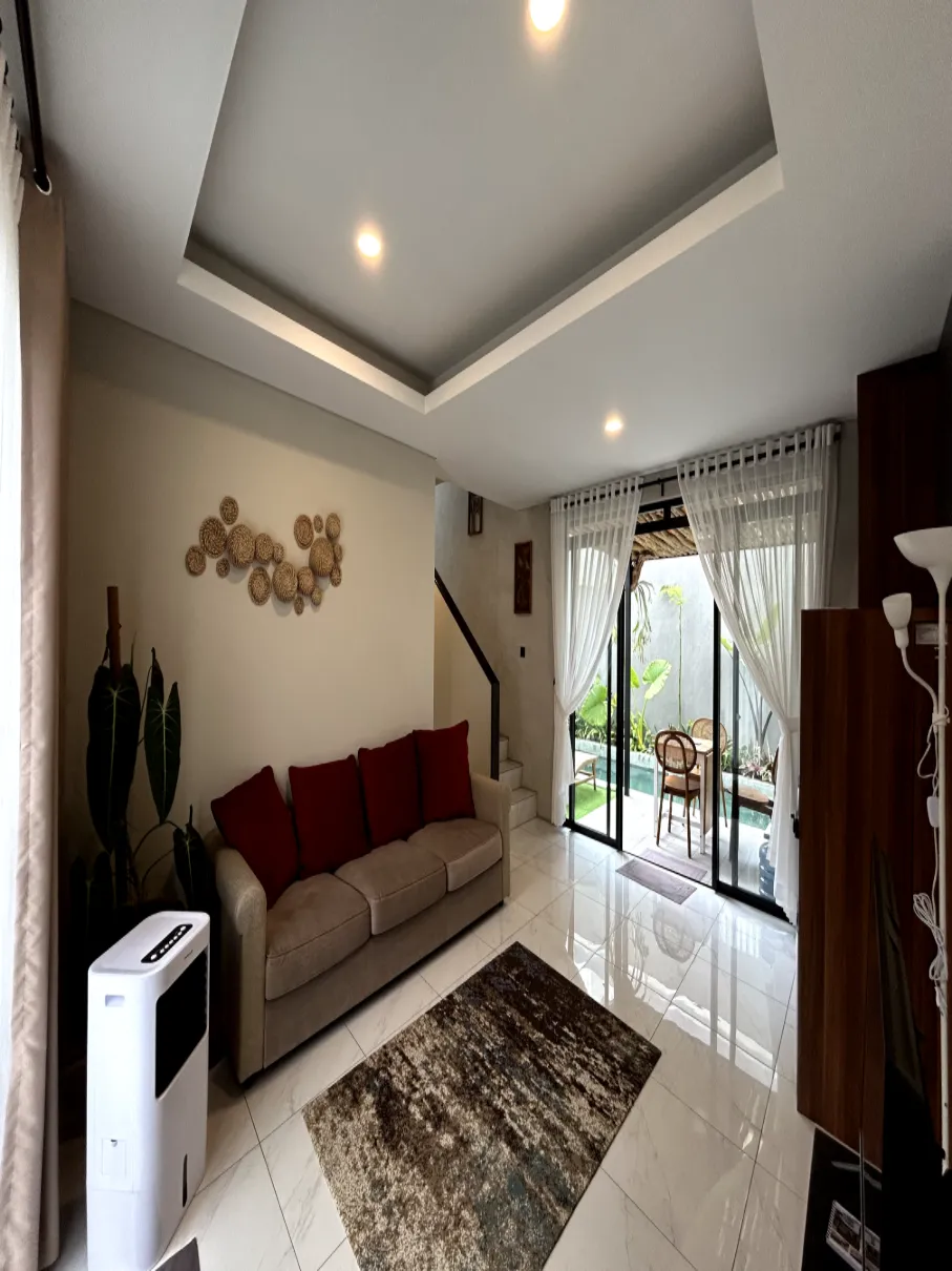 Lantai pertama menciptakan suasana terbuka dan nyaman, termasuk:
